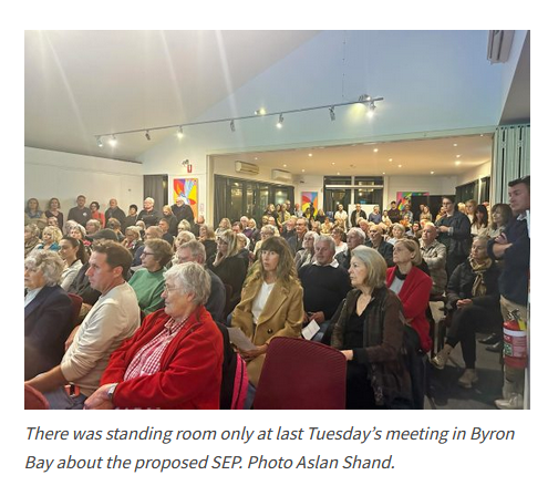 👊 People of Byron (POB) was part of a group that helped raise community awareness about the impacts of the proposed Special Entertainment Precinct (SEP). The campaign and key members spent countless hours dissecting the NSW Government policy and relentlessly interrogating the issue at a Council level. In July last year, a community meeting was held at Byron Bay Community Centre, organised purely by word-of-mouth, SOLD OUT 😊 The community wanted information, they came to hear local and knowledgeable speakers break down the SEP because Byron Shire Council took the second step before the first. The meeting was widely reported in the media and put the issue under the spotlight.